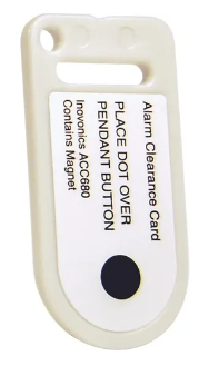 - The alarm clearance card can be used to easily clear alarms for the PalatiumCare Single Button Waterproof Pendants by placing the indicator dot over the pendant activation button